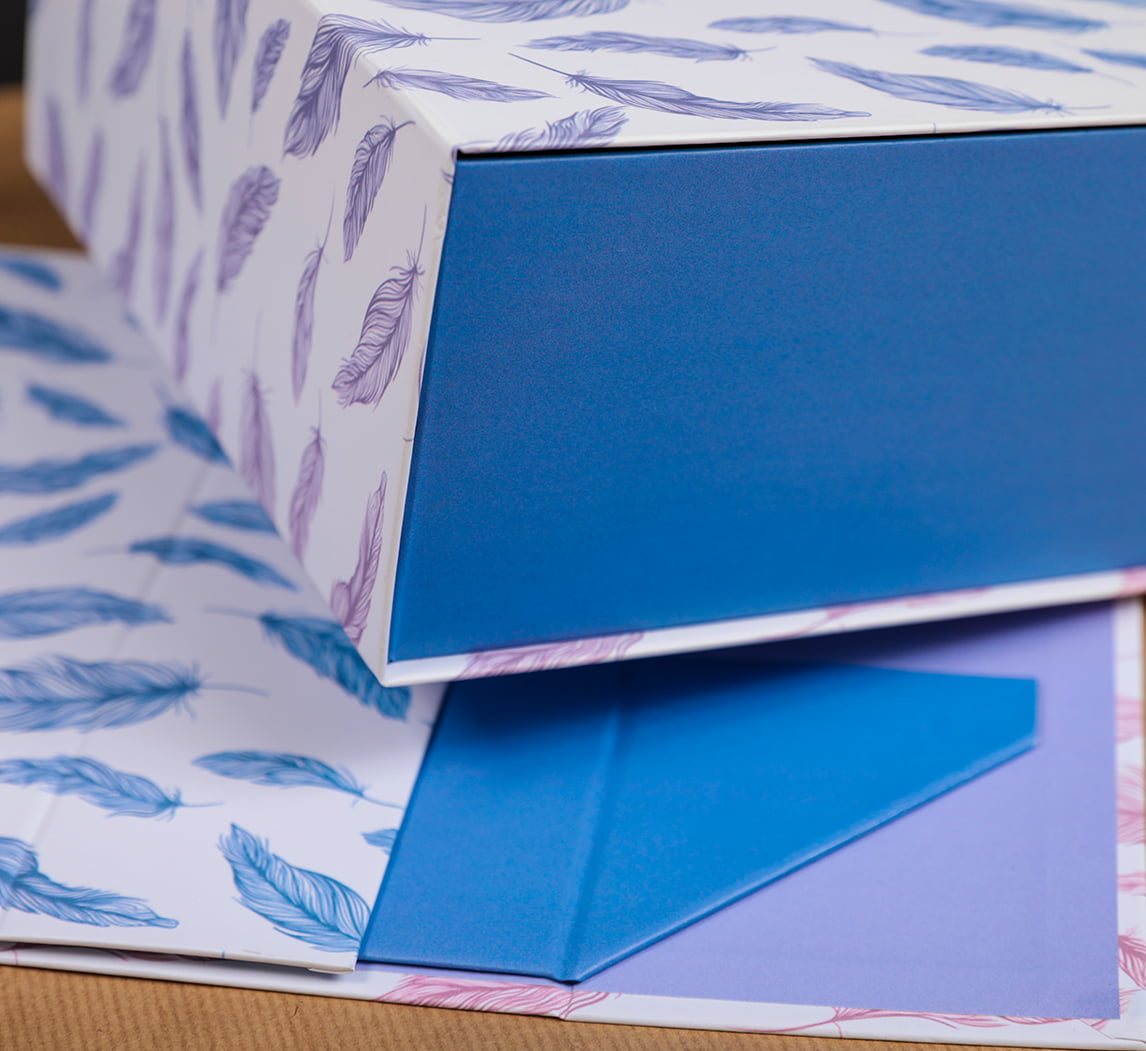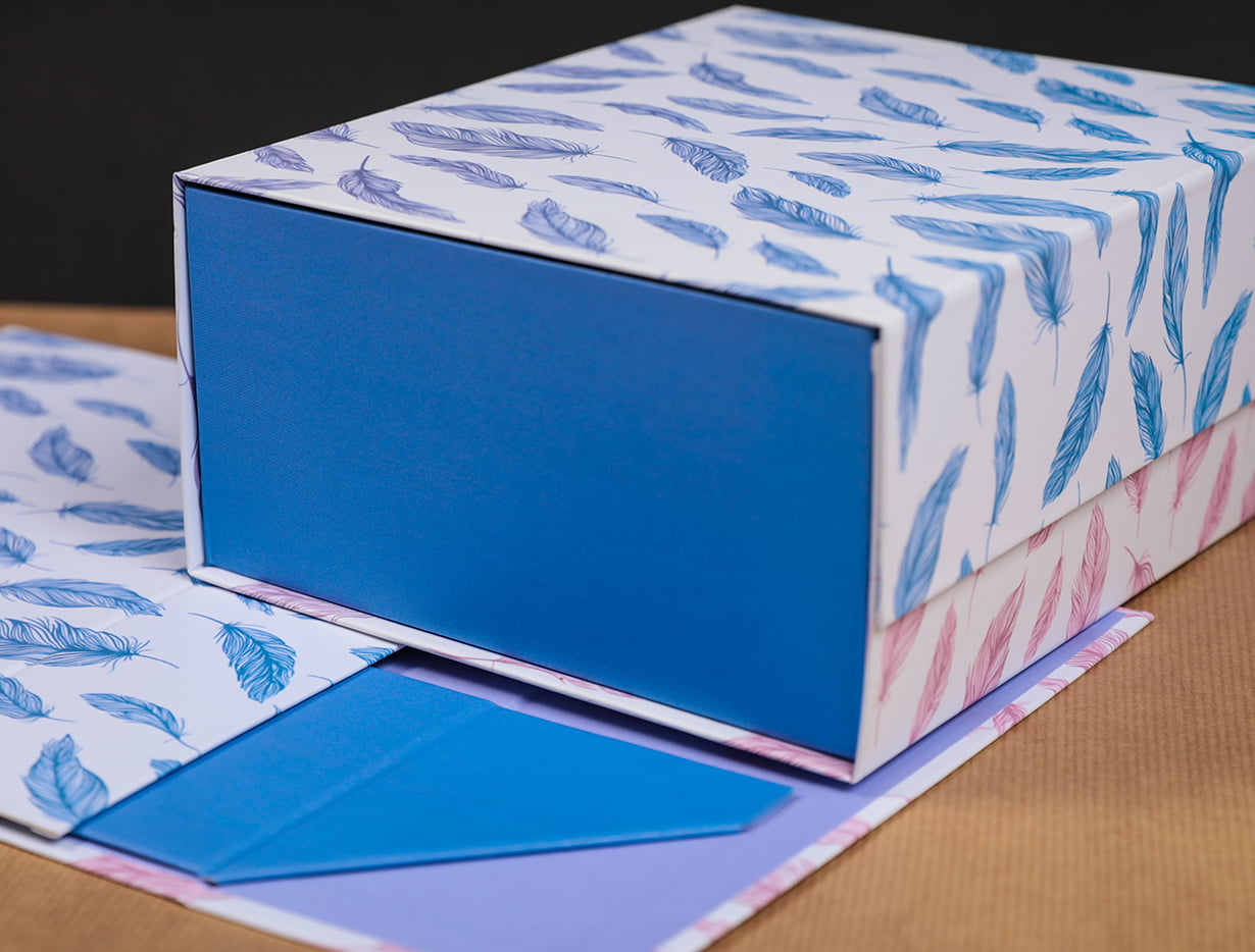 We were very responsible in creating this convertible box. It is made of hard binding cardboard. For pasting coated paper is used, printed in soft colors and laminated with matte film. Built-in magnets provide a perfect closure.