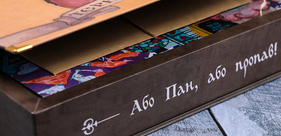 Packing of binding cardboard with pasting of coated paper, to which we previously gave the structure of flax due to embossing. The playing field was obtained by laminating coated paper with binding cardboard. High-quality grooving of cardboard ensured its perfect and compact assembly. Game money printed on kraft paper, the texture of which gives the player a sense of authenticity. Tokens and chips are made, the technology is similar to the manufacture of puzzles. The instruction brochure is printed on book paper and sewn with a bracket. It is a pleasure to take part in the implementation of such projects.