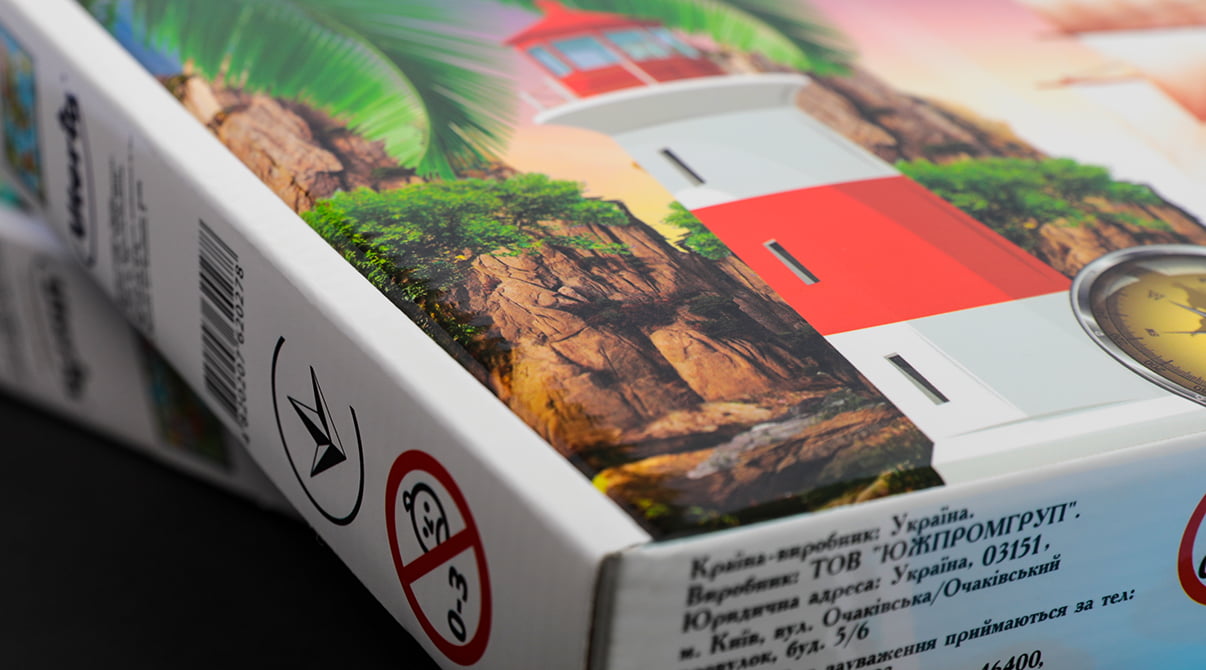 Therefore, to make a cardboard puzzle, we carefully selected the glue for double-sided lamination, and the liners on both sides were of the same material, laminated with matte film. Careful cutting of puzzles and their subsequent controlled assembly in a package of corrugated cardboard gave a good and really high quality product. This is the case when a well-thought-out technology at the start of the project allows you to be confident in the end result and the manufacturer and the customer!