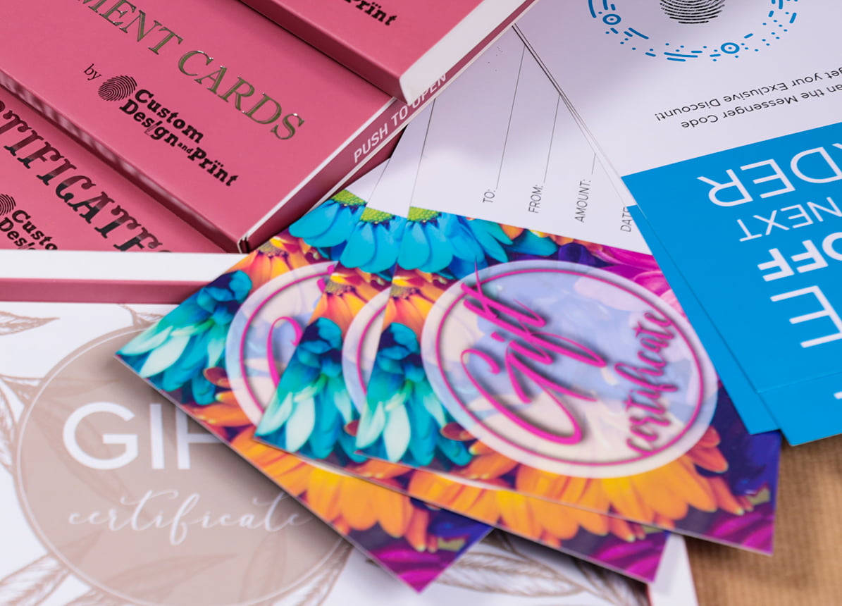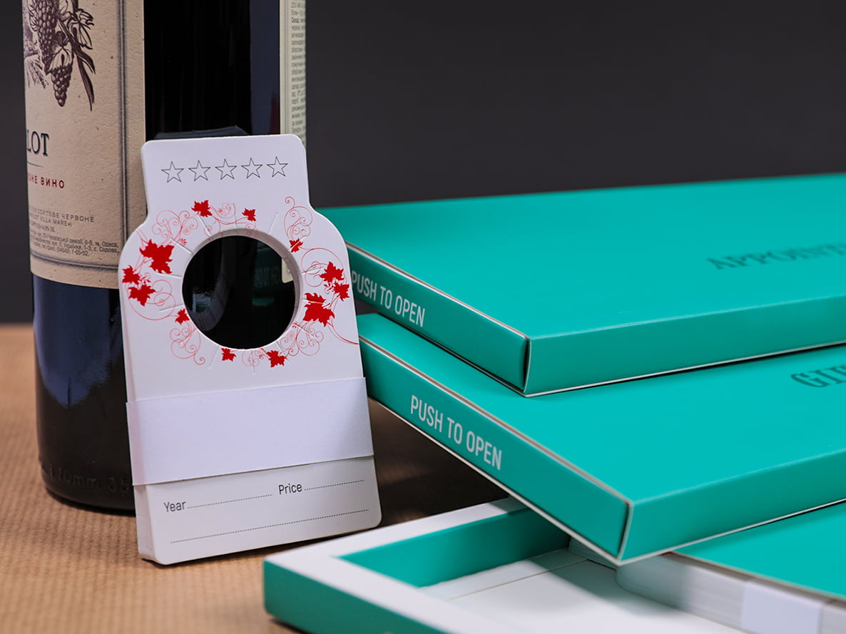 Подарункові сертифікати, візитівки, бирки для пляшок з алкогольними напоями, картки направлень до спеціалістів, флаєри на знижку – вся ця поліграфія зібрана в зручні набори та красиво запакована для продажу через Amazon.